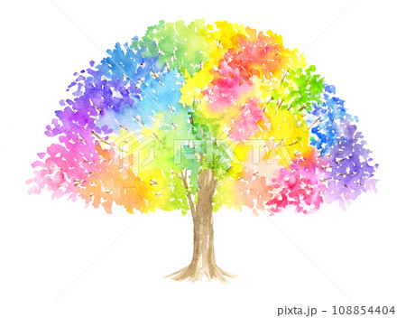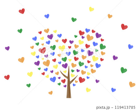水彩で描いた虹色のハート LGBTカラー 多様性