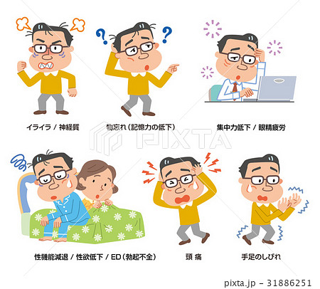 男性 更年期 症状 モノクロ それぞれ イラスト