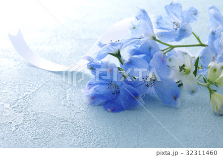 花 花束 デルフィニューム プラチナブルー