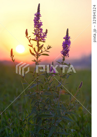 春5月野原に咲く紫色のヒエンソウの花