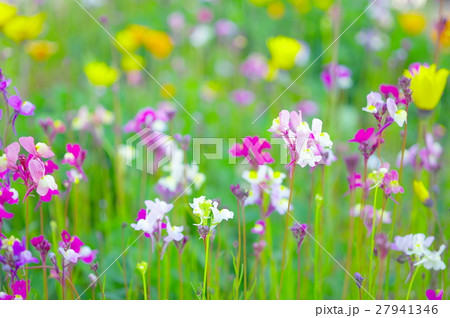 公園の色とりどりのリナリアの花が満開できれいです。