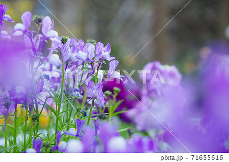 群生する紫色の春の花リナリア