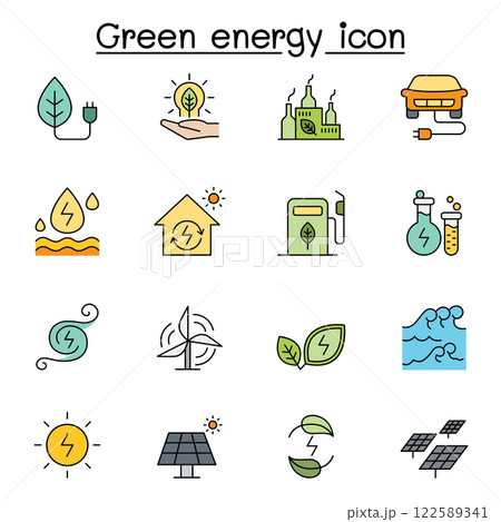 Green energy icon set in color line style