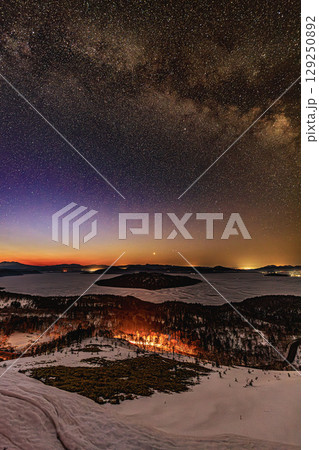 美幌峠から望む天の川と冬の屈斜路湖