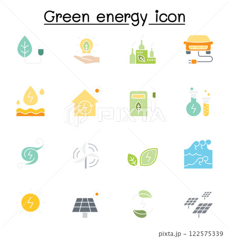 Green energy icon set in flat color style