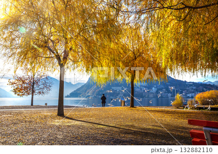Enjoy autumn (autumn leaf color) in park of Switserland (Lugano or Lausanne or Zeneve or Bern or Zurich or Luzern or Basel Or Locarno