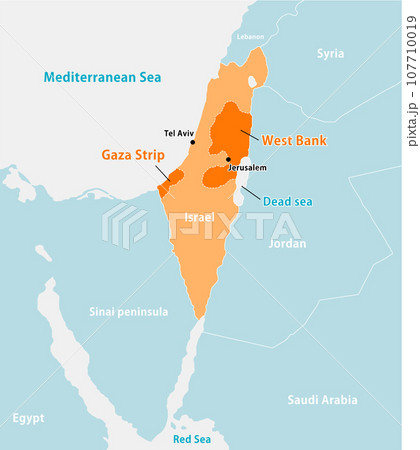 パレスチナ問題 (イスラエル・パレスチナ・ガザ地区) ベクターマップイラスト