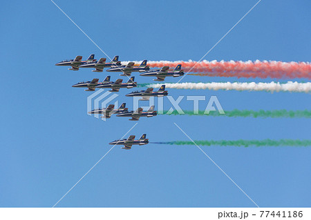イタリア空軍アクロバットチーム「フレッチェ・トリコローリ」編隊飛行