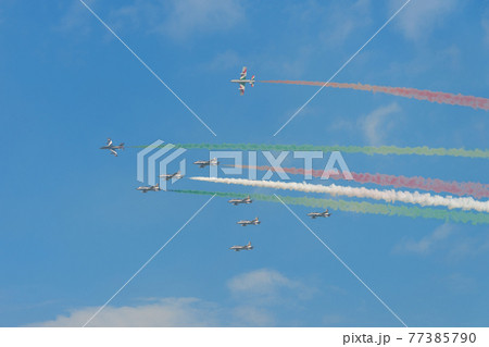 イタリア空軍アクロバットチーム「フレッチェ・トリコローリ」編隊飛行