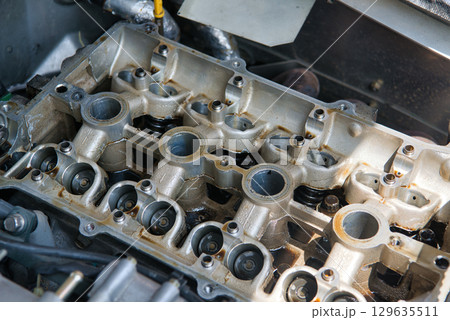 カムシャフトを外した直列4気筒エンジン