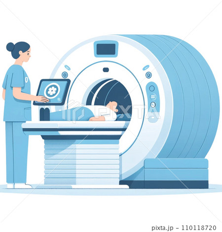 MRIで診断される患者と寄り添う医療スタッフ ストックイラスト素材