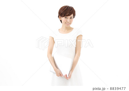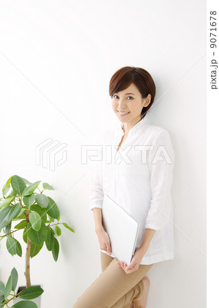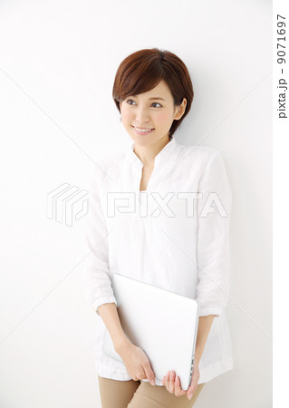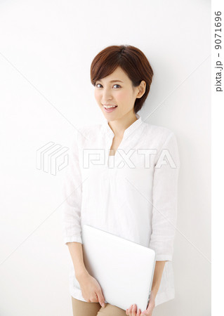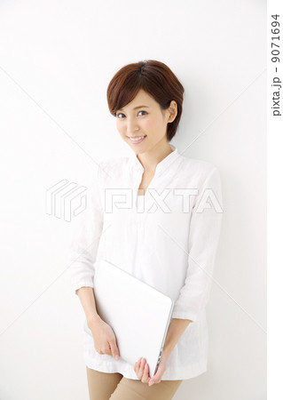 ノートパソコンを持つ女性
