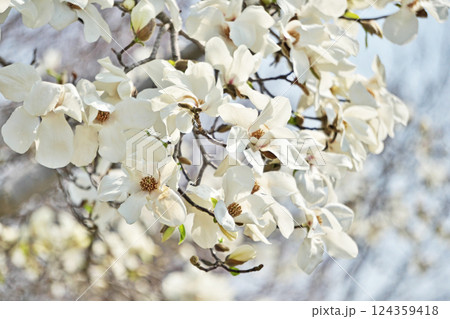 コブシ咲く警固公園 西鉄天神駅 福岡市中央区天神 背景ボカシ