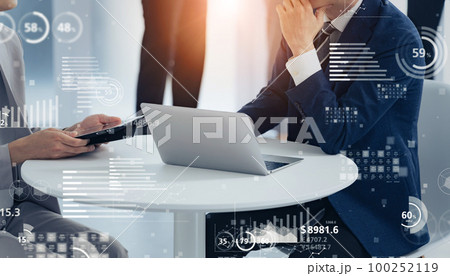 会議する人々とビジネス文書 デジタルドキュメント ペーパーレス