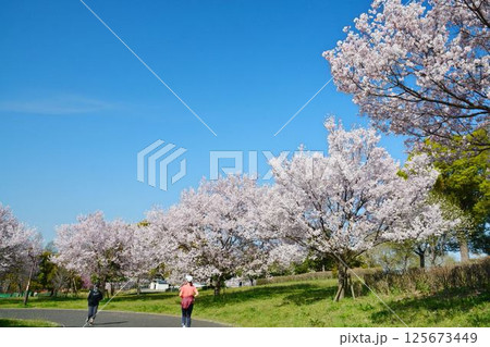 滋賀県長浜市高時川の堤の満開の桜を撮影
