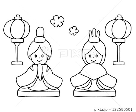 ひな祭りのひな人形、シンプルで可愛いおひな様のアイコンイラスト素材の塗り絵