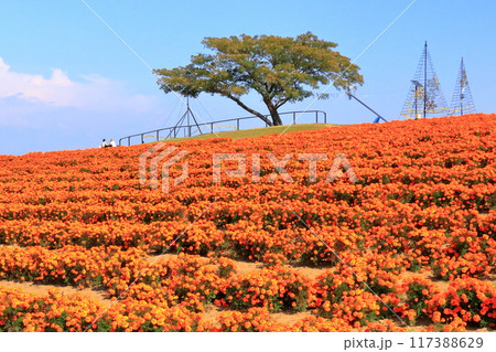 富士見高原リゾート花の里ロマンスエリア マリーゴールドが咲く風景 長野県諏訪郡富士見町