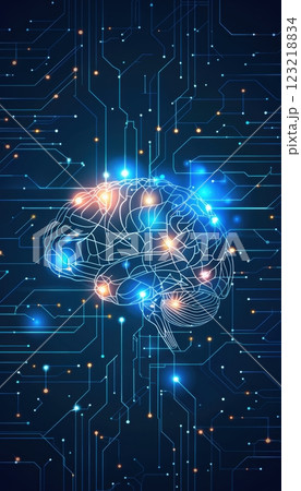 Futuristic Digital Brain with AI Circuits and Glowing Pathways for Technology Design