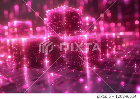 Glowing Pink Neon Cubes in Digital Matrix for Futuristic Design and Tech Aesthetics Generative AI