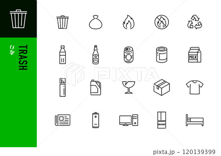 Garbage Types outline icons set - Waste Sorting vector symbols