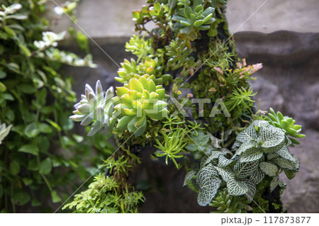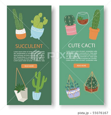 Succulents and cactus vertical botanical vector banners. Greenery lush, cacti, succulents, leaves