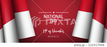 Realistic 3D render of the Monaco national flag, high quality fabric texture
