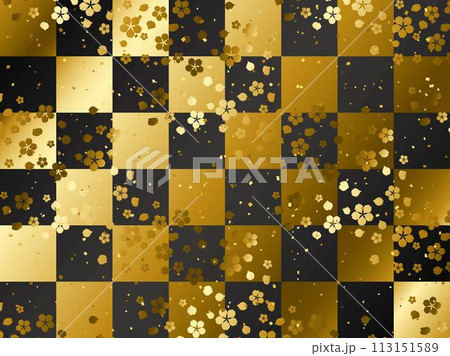 白と金色のもみ和紙と桜柄の千代紙の和風背景