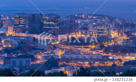 Panoramic view over Lisbon and Almada from a viewpoint in Monsanto night to day timelapse.