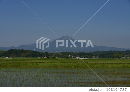 田植え後の大山と水田(鳥取県)Spring landscape of Mt. Daisen refl