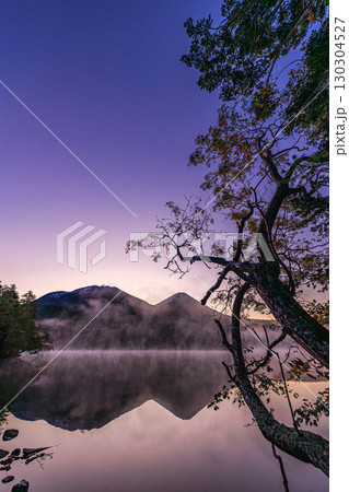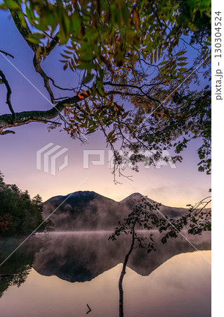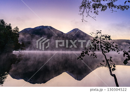 幻想的な湖面に映る雌阿寒岳と阿寒富士 ― オンネトー