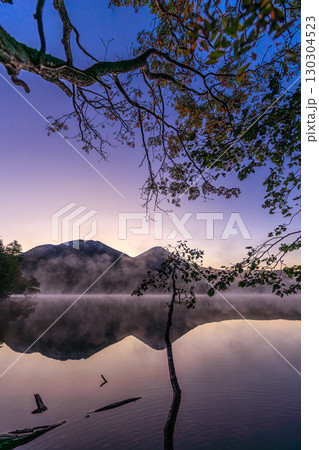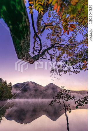 秋のオンネトー、霧に包まれる神秘の湖