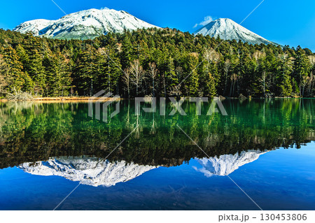 神秘の湖オンネトーと雌阿寒岳・阿寒富士のシンメトリー