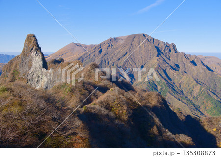 熊本県の阿蘇山、根子岳東峰から望む天狗岩