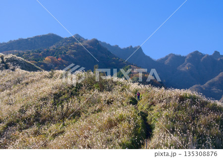 熊本県の阿蘇山、根子岳釣井尾根から望む高岳
