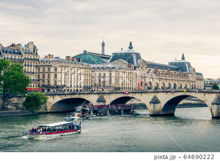 パリセーヌ河畔の風景 元鉄道駅 オルセー美術館 遠くにエッフェル塔