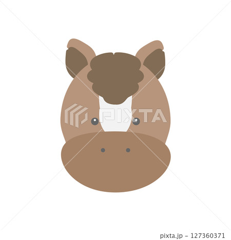 Brown horse and her little foal grasing in the green flower meadow. Simple flat stylized illustration