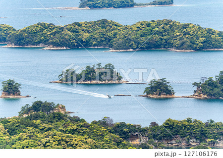 (長崎県)展海峰展望台から眺める九十九島 島巡り遊覧船