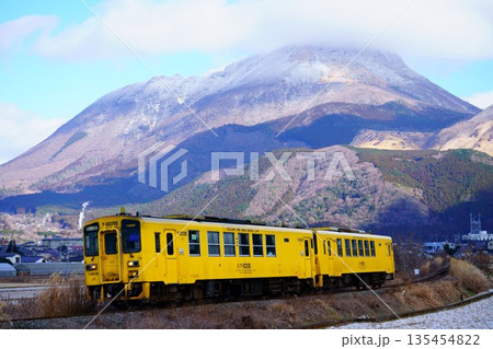 由布岳と黄色の列車(JR九州 キハ125形)