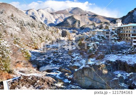 栃木県日光市 冬の雪積る鬼怒川温泉
