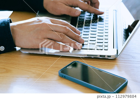 デスクワーク 人物 男性 パソコン タイピング オフィス デスク 日本人 副業 テレワーク 個室