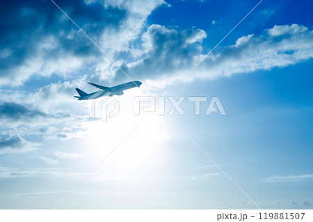 夏空、リゾートと飛行機、旅客機のイメージ集