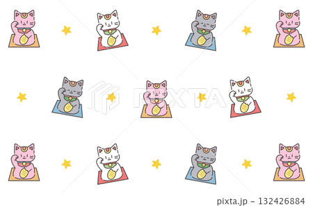 カラフルな招き猫の背景パターン かわいいラッキーモチーフ Cute Maneki Neko