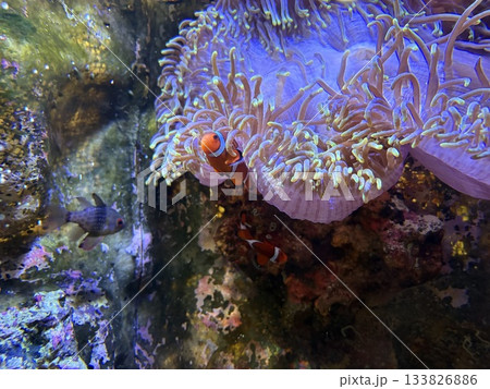 Clownfish Hiding in Sea Anemone, Neon Marine Biodiversity