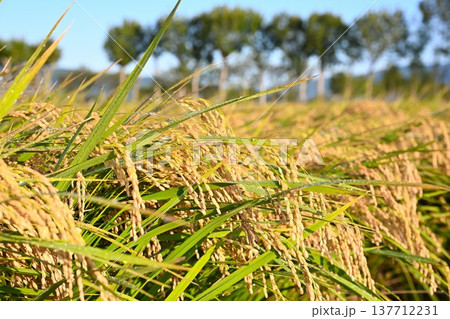 夏井のはさ木と稲穂の風景(新潟県新潟市西蒲区)