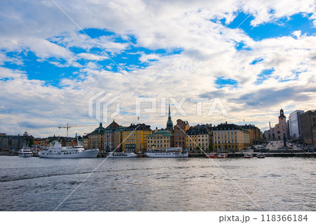 スウェーデン ストックホルムの湖と旧市街ガムラスタンの街並み