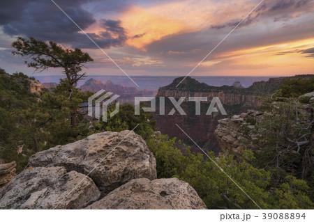 USA, Arizona, Grand Canyon National Park, North Rim, Grand Canyon at sunset