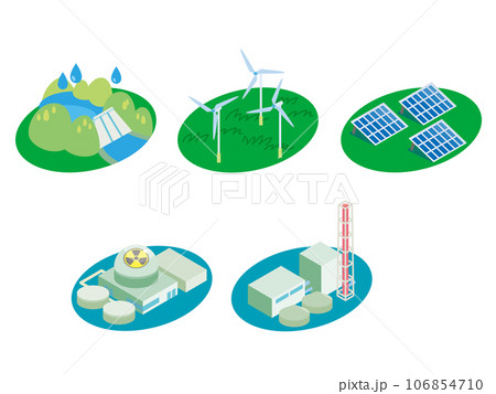 水力発電 風力発電 太陽光発電 原子力発電 火力発電 発電所セット