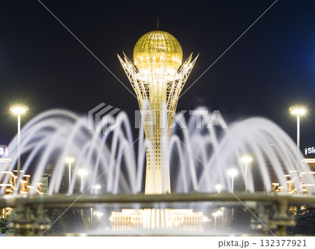 カザフスタン・アスタナ 夜空に輝くバイテレクタワー / Astana, Kazakhstan
