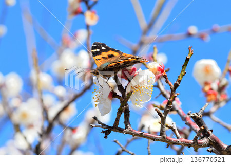 梅の花の蜜を吸うアカタテハ