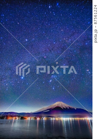 山中湖から見た富士山とオリオン座【山梨県】